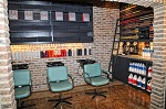 Executing the goals of utility, functionality and concern for the environment, choices were made based upon sustainability and low maintenance. Dryer, shampoo, styling, client waiting chairs and the reception desk were chosen from a local salon equipment repurposing outlet and refurbished. Chicago antique brick grounds the space and appears to be a pre-existing element rather than an addition. Mirrors add dimensional interest to the narrow salon and provide function for the stylists’ work stations. Crucial to planning for a color salon was the lighting design, so daylighting and incandescent lights were selected throughout the salon for the most natural color and least heat emission. Concrete counter tops were added to custom designed styling stations. Custom iron shelving was fabricated to display product lines and iron is repeated in custom framing for the unisex restroom mirror, the kitchen/break room counter and backsplashes in both the kitchen and the color prep area. The entire salon is painted in varying hues of slate grey providing depth while visually enlarging the area through color uniformity. Framed vintage hair and makeup brochures accessorize the salon reminding us that we are being served by a space which gives merit to classic design styles which have served and continue to us so well while maintaining a firm grasp of the future and of our responsibility to the environment.